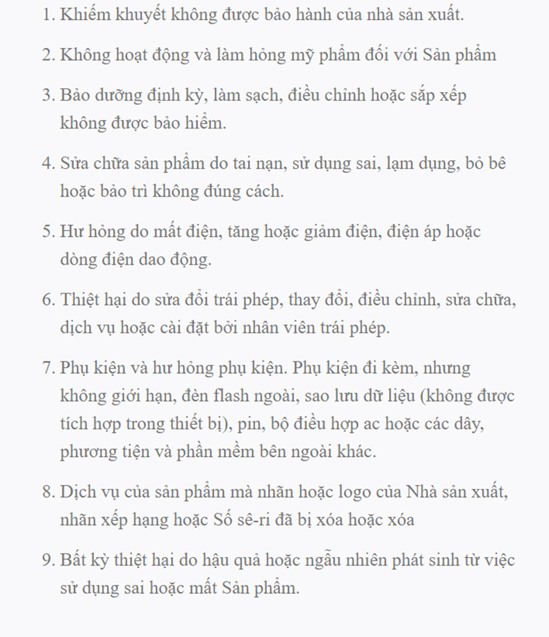 Sau 48h kể từ ngày quý khách nhận hàng, chúng tôi có quyền từ chối hỗ trợ cho những khiếu nại theo nội dung như trên.